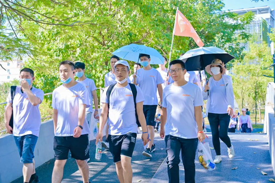 Time passed and it was almost noon, the team was getting closer and closer to the goal of the end. Finally, the team took 4 hours to travel a total of 21.9 kilometers, and all 150 members arrived at the end without leaving anyone behind.